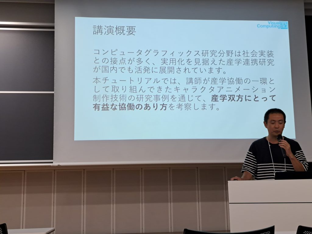 初日9月7日(日)は、早稲田大学63号館にてVCチュートリアルからスタート! 今回のテーマは「アニメとCGの未来を考える1日 ~産学の現場から学ぶ~」でした。 チュートリアルでは、アニメーションやCG制作に携わる企業の実務者や研究者による講演とパネルディスカッションを通じて、最新技術から制作現場のリアルまで、わかりやすく解説されました。