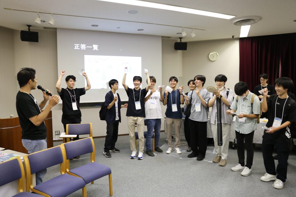 9月8日(月)の夜にはレセプション(クイズ大会&パン祭り)が開催されました。スポンサー企業がクイズ持ち寄り、工夫が凝らされたクイズに、学生、先生、企業の参加者が真剣に挑戦!全問正解の猛者も現れ、会場は大いに盛り上がりました。