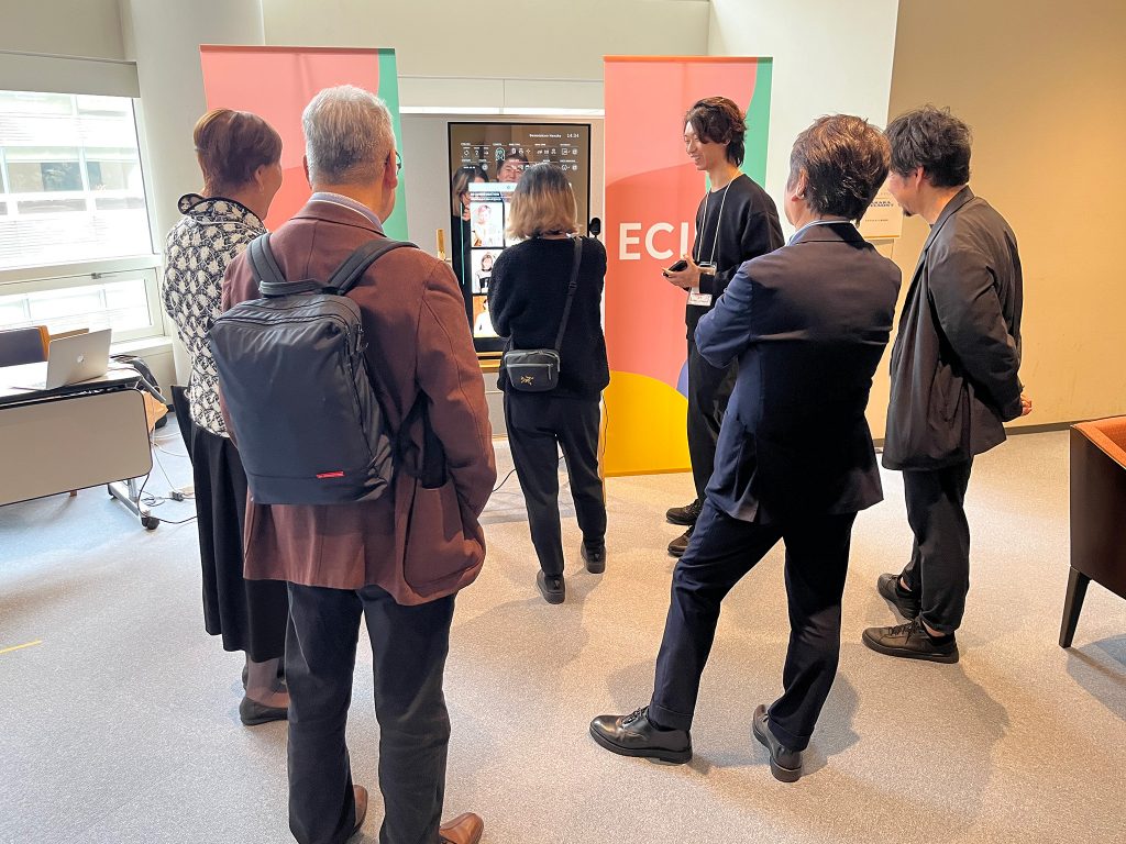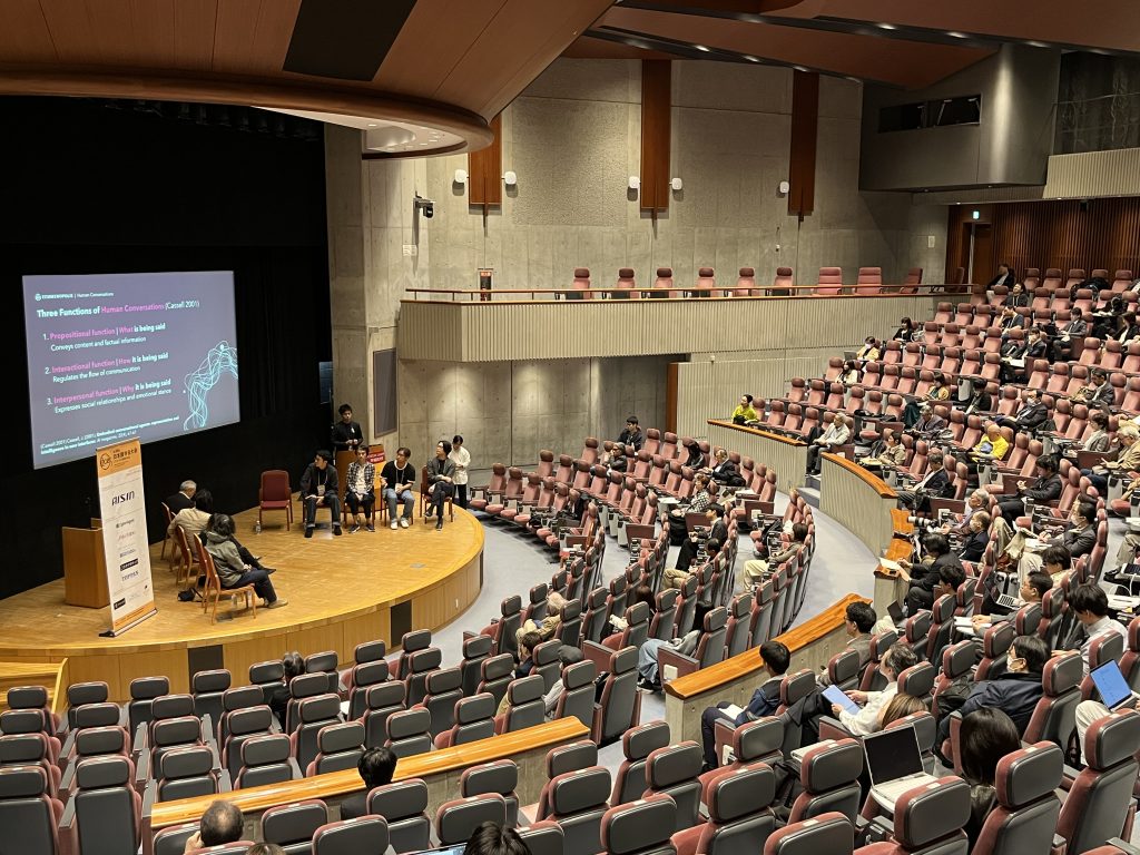 同時に、ホワイエではスポンサー展示が行われ、多くの企業がパネル展示や実機を用いたデモンストレーションを通じて参加者がより理解を深めることができ、相互理解して活発なコミュニケーションが取れている印象でした。似顔絵コーナーも設置され参加者たちで列ができるほど盛況でした。